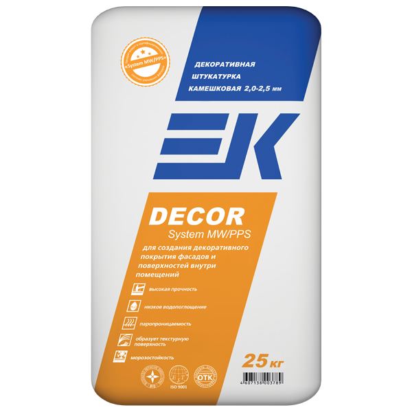 Минеральная декоративная штукатурка камешковая 2-2,5 мм EK DECOR System MW/PPS