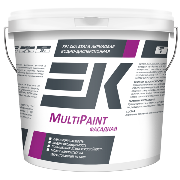 Краска белая акриловая водно-дисперсионная EK MultiPaint фасадная