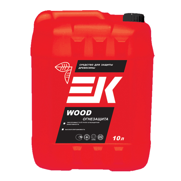 Средство EK WOOD ОГНЕЗАЩИТА предназначено для огнезащиты деревянных конструкций – защиты от возгорания, распространения пламени. Обеспечивает I и II группу огнезащитной эффективности по техническому регламенту о требованиях пожарной безопасности (Федеральный закон ФЗ-123 от 22. 07. 2008) и ГОСТ 53292-2009. Переводит древесину в трудновоспламеняемый материал. Средство полностью готово к применению. После обработки дерево может приобрести желтоватый оттенок, не препятствует дальнейшей обработке, склеиванию и окрашиванию. Для внутренних и наружных работ. Внимание! Использование для наружных работ предполагает последующую обработку для создания защиты от атмосферных воздействий. При обработке лакокрасочными материалами огнезащитная эффективность снижается до II группы.