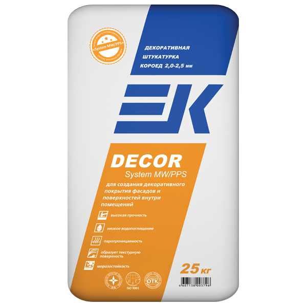 Минеральная декоративная штукатурка короед 2-2,5 мм EK DECOR System MW/PPS